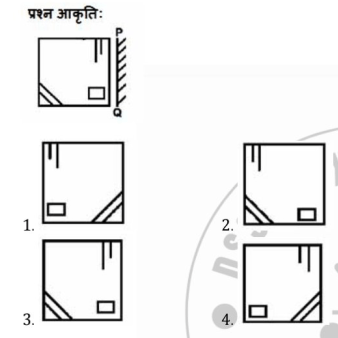Q. 2 जब एक दर्पण को P Q पर रखा जाता है, तो निम्न में से कौनसी आकृति, दर्पण छवि होगी?